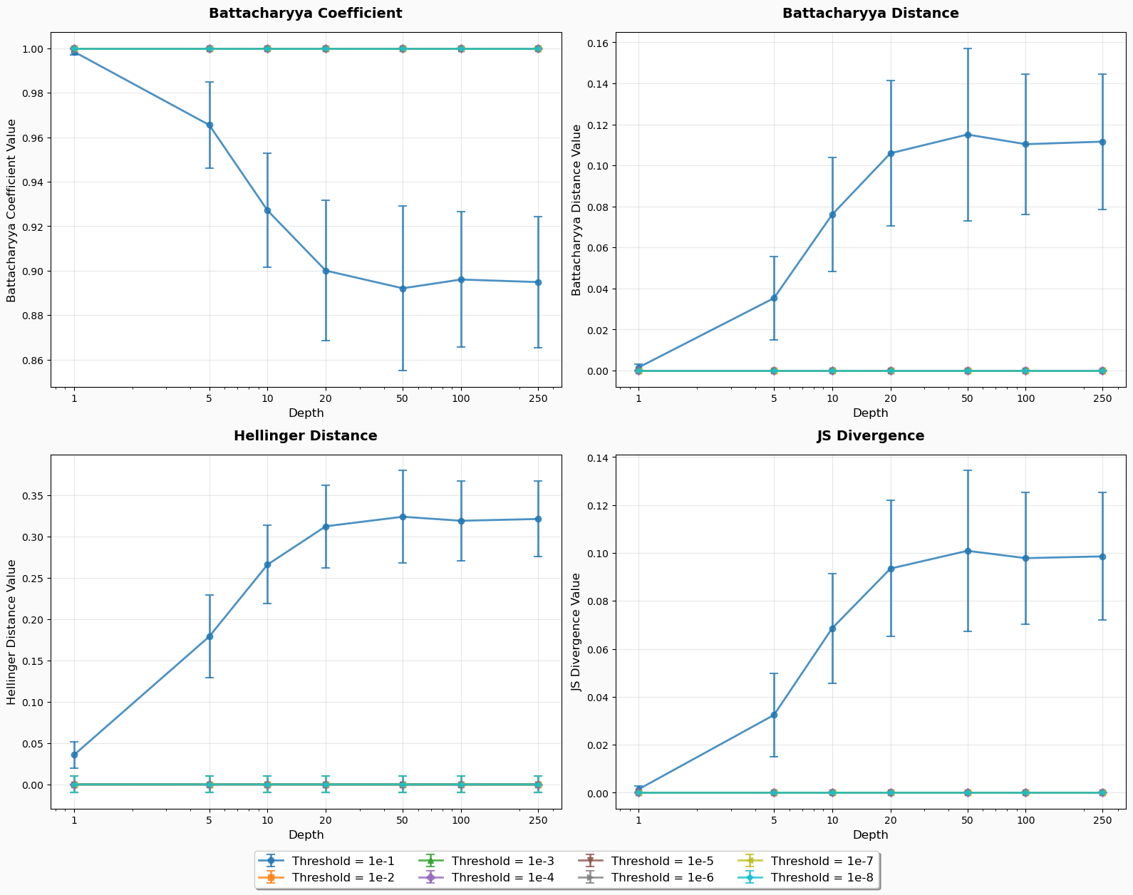 Figure 4: JS Divergence Comparison between MCWF and Density Matrix Simulations at depths 1, 50, and 200.