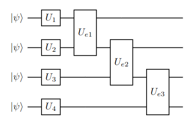 For both comparisons, we use a randomized quantum circuit. The circuit consists of layers of single qubit gates followed by entangling gates. The depth of the circuit is varied to observe the performance under different noise levels. Only single qubit gates are subject to noise and the entangling gates are assumed to be ideal. The randomized circuit blueprint is shown in Figure 1.